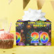 Det här flerfärgade och glatta födelsedagstecknet med papper design har ett stort nummer "20" med en färgstark regnbågsspektrumövertoning som inspirerade mönster, tillsammans med meddelandet "20:e födelsedagen i Lycklig" och ett eget namn. Bakgrunden är ett flerfärgat mönster som inspirerats av att det ser ut som att bränna berömda fyrverkerier. Det kan vara ett roligt att slå in en gåva eller gåva som ges till någon som firar sin tjugonde födelsedag. Det kan vara ett pappert sätt att göra det på. [~Z0000587]