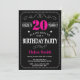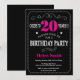 20:e födelsedagarinbjudan till Shock rosa Black Ch Inbjudningar