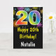 20:e födelsedag: Färgt fyrverkerikort för regnbåge med personlig namn. Om du vill göra ytterligare anpassningar klickar du på knappen "Anpassa" och användor verktyg som är utformat för att ändra mallen.