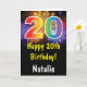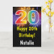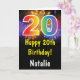 20:e födelsedag: Färgt fyrverkerikort för regnbåge med personlig namn. Om du vill göra ytterligare anpassningar klickar du på knappen "Anpassa" och användor verktyg som är utformat för att ändra mallen.