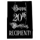 Den här utformandet och elegantens presentsäck för födelsedagspressar innehåller meddelandet "Lycklig 20:e födelsedag" i lyxskript stil på svart färgad. Det innehåller också en redigerbar mottagare av namn. En finare-presentpåse som denna kan användas när en gåva eller present är ge för att hedra någons tjugonde födelsedag. [~Z0000557]