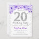 20:e Födelsedagsfesten - Vita Silver Lila Inbjudningar