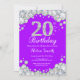 20:e födelsedagsinbjudan Lila och Silver Diamond Inbjudningar