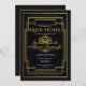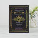 Den här Art deco-inbjudan inspireras av 20-talet och Underbara Gatsby, och har en guldkonst deco ram som är inställd på en svart dammbakgrund. Daisy Buchanan skulle godkänna det!