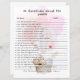 Föräldrarnas 20 frågor om en oförglömlig resa - Ett babyspel för Personlig och uppvärmning När du förbereder dig för att fira att ditt lilla gungel kommer, varför inte lägga till en lite hjärtslitande anslutning till din babydusch med vårt unika och engagerande spel, "20 frågor om föräldrarna". Denna vackra aktivitet är designad för att skapa varaktiga minnen, främja meningsfulla samtal och fira historien i kärlek som samlade din familj. "20 frågor om föräldrarna": Tänk dig rummet fyllt med skratt, leenden och en känsla av anknytning när gästerna sätter sig ned i ett spel som firar de blivande föräldrarnas resa. "20 frågor om föräldrarna" är inte bara ett spel, utan det är en intim undersökning av de historier och erfarenheter som har format livet för de blivande föräldrarna, och skapar en personlig och hjärtefterfarenhet för alla inblandade. Hur du spelar: Distribution av frågekort: Om du vill starta spelet distribuerar du "20 frågor om föräldrar"-korten till varje gäst. De här tankeväckande korten innehåller en rad frågor som uppmanar deltagarna till insikter, minnen och historier om de blivande föräldrarna. Svar och delning: När spelet fortskrider tar gästerna turerna att besvara frågor på sina kort, dela anekdoter, minnen och önskemål som är relaterat till de blivande föräldrarna. Frågorna omfattar en rad ämnen, från parets favoritdejtkväll till deras mest omhuldade minnen tillsammans. Samarbetsvillig Förlovning: Spelet uppmuntrar till förlovning i samarbete när gästerna lyssnar på varandras svar och är för att upptäcka mer om föräldrarna. Skratt, delade minnen och hjärtslitande stunder fyller rummet och skapar en känsla av anknytning till firande. Kortet Keepsaké: De ifyllda frågekorten är som en vacker keepsaké för blivande föräldrar. De blir en samling hjärtliga budskap, berättelser och välmående önskemål som fångar kärlek och värme som delas av vänner och familj under denna speciella tid.