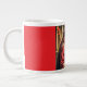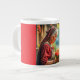 The image of an elderly woman serenly looking at a bouquet of flowers covers this mug.