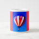 En färgrik varmluftsballong täcker framsidan på denna mugg.