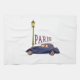 En vintageillustration av en 20-talbil och lampan postar. Text läser: "Paris".