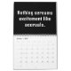 Ge lite sarkastisk lättnad åt malningen av kalkylblad, revisioner och ändlösa månadsslut med denna 12-månaders demotivitetskalender för revisorer. Varje månad har en mörkt rolig, redovisningsinspirerad typografisk slogan som "Min karriär väg är en cirkelreferens" eller "Månadssluten stal min vilja att leva". Denna kalender, som är en blandning av mörk humor och räkenskapslivet, ger en roligt för CPA, bokhållare, revisorer och andra finansprofeter som skulle kunna använda ett skratt mellan försoningarna.