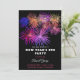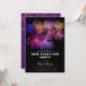 En modern och elegant nyårsinbjudan med färgglada eldkastare på svart bakgrund och lila glitter på baksidan. Detta färgglada inbjudningskort fångar andan av nyårsafton. Perfekt för att inbjuda dina vänner och nära och kära att fira nyårsafton.