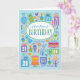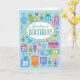 Ett starkt feminininfödelsedagskort för en fullt på 21:a födelsedagen varje för en firande. Kakor, presenter, ballong, blommor och hattar i party fyller kortet på en blå bakgrund och bildar också grund gräns på kortets insida.