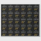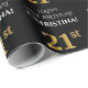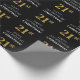 Den lyxiga och elegant födelsedagstexten som omsluter den pappra designen innehåller budskapet "LYCKLIG 21:a BIRTHDAY", ett redigerbart namn, och födelsedagsnumret "21:a" med ett faux/imitation guld inspirerat utseende mönster. Bakgrunden är svart på färgad. Papper som denna kan användas när man slår in gåvor/presenter som ges för att fira någons 21:a födelsedag. [~Z0000454]