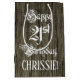 I finare och i presentsäcksdesignen på årsdagen finns budskapet "Lycklig 21:a födelsedagen" i det högtidliga manuset stil, på en utseglad träbakgrund i mönster. Det innehåller också en mottagare av anpassade namn. En matad presentsäck av det här slaget kan användas när man ge en gåva eller present i firande på någons 21-årsdag. [~Z0000558]
