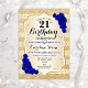 21:a födelsedag - Guld Rand Royal Blue Ro Inbjudningar