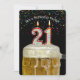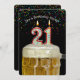 Nummer 21 födelsedagsljus i mugg på öl med färgstark konfetti på svart i 21-årsdagen party inbjudan.