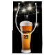 Party sparkler i ett kall glas öl med ljussträng mot svart bakgrund under 21:a födelsedag. Ålder kan ändras. Bakgrunden till färg kan ändras.