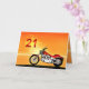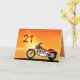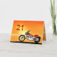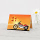 En motorcykel som liknar en Harley som står vid havet med en strålande orange solnedgång. Ett underbart kort för alla som tycker om cyklar och motorcyklar.Se hela korten för åldrar och relationer i min butik. Alla upphovsrätter till teckningar Norma Cornes