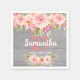 En rustisk stil-napkin för 21-årsdagen party. Med contemporaryns rosa, persiko- och korallblommor i vattenfärgad färgad av dahlia. En grått målad trävägg som bakgrund. Mallar för namn, ålder och datum. Födelsedatum eller datum för party. Namn är skrivet med ett skript för stil med vit färgad. Ålder nummer 21 i koraller.