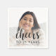 Den här 21:a födelsedagen i anpassningsbarna innehåller gästen med hederets personlig foto, namn och födelsedag, tillsammans med ord "Cheers" i elegantens svarta kalligrafskript. Ett vitt skärm hjälper till att göra så att texten visas. Ett underbart sätt att fira någon som vänder 21!