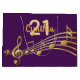 Flickans Lila bakgrund med faux guld musik noter för en 21-årsdag. Mallar för åldern 21 år och namn. Namn är skrivet i ett handskrivet skript i stil. Brev och nummer.