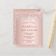 En modern, snyggt och glamorös inbjudan till 21-årsdagen party. En ro-guld-faux-metall tittar bakgrund med elegant ro guld, rosa och faux silver glitter dropp, färgdroppstift. Namn är skrivet med ett modernt skript för färgaden ro guld i mörk, skrivet med stil. Anpassa och lägg till information om namn, ålder och party. Tips! Om du inte vill att det ska se ut som ett vykort klickar du på anpassa, går till baksidan och tar bort delaren och lägger till frimärke.