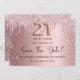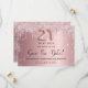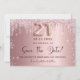 Ett girigt och trendig Spara datumkortet för en 21-årsdag party. övertoningsbakgrund för rosa, dekorerad med droppar och stoft från rosa och faux silver glitter. Anpassa och lägg till datum och namn/text. Texten: Spara datumet skrivs med ett stort trendig-handskript i stil. Nummer 21 med ett stil-typsnitt för färgaden ro guld.