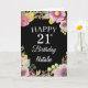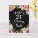 21:a födelsedag, svart Blommigt för vattenfärg Kort