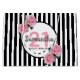 Klassiskt smalt svart och vitt lodrät rand som bakgrund. Med giftigt, feminin och romantiskt rosa ros som dekoration. Perfekt för en elegant på 21:a födelsedag party för henne. Ett vitt och svart ram med mallar för namn, ålder och datum. Ålder nummer 21 i rosa, namn och datum i svart. Namn är skrivet med ett handskript i stil.