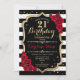 21:a födelsedagsinbjudan Elegant svartvit design med faux glitter. Svartvit rand med röd ros. Perfekt för ett elegant födelsedagsfest.