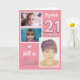 Anpassa detta 21:a födelsedagskort med namn och foton Designade i rosa och vitt, med kärlek hjärta. 21 i dag är Grattis på födelsedagen fortfarande så söt