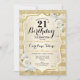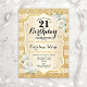 21:a födelsedagsinbjudan. Utformning av blommigten i guld och vitt. Funktioner faux glitter guld rand, vit ros snyggt, skriptteckensnitt och konetti. Perfekt för en glam-födelsedagsfest.