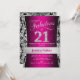 21:a födelsedagspartiets inbjudan till rosa svart och silver. Elegant inbjudan-kort med faux glitter silver och diamanter. Innehåller dämpat mönster och skriptteckensnitt. Fabulous på 21! Klassisk perfekt för snyggt party. Berätta om du behöver en anpassningsbar ålder.