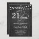 Rustic 21:a födelsedagsinbjudan Rustic enkel design med mörk grått wood mönster och fairy string ljus. Teckensnitt för funktionsskript. Skål till 21 år! Kan vara personlig i vilken ålder som helst! Berätta om du behöver anpassa dig ytterligare.