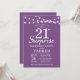 Överraskad 21:a födelsedagsinbjudan med String Ljus. Lila Lavender Lilac Background. Kvinnlig kvinnlig Dam Elegant Modern dag. 13:e 15:e 16:e 18:e 20:e 30:e 40:e 60:e 70:e 80:e 90:e 100:e, oavsett ålder. Om du vill göra ytterligare anpassningar klickar du på knappen "Anpassa" och användor verktyg som är utformat för att ändra mallen.