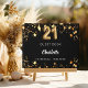 En snyggt svart bakgrund med faux guld-stjärnor. Lägg till namn och text. Åldersnumret skrivs med ett stil-teckensnitt för ballong. Rygg: lägg till texten.