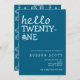Säg "hej till tjugoen" med denna moderna och snyggt vuxen födelsedagsfest inbjudan. Den enkla havets blå bakgrund kompletterar perfekt den vita texten och födelsedagskalan, och lägger till en aning klass till designen. Avslappnaden ger uttryck för en känsla av spänning inför det kommande firande. Denna contemporary och minimala inbjudan är perfekt för en födelsedagsfest med milstolpe. Redo för dig att anpassa och skicka ut till alla dina nära och kära, vilket är en praktisk digital nedladdning. Gör dina 21:a fantastiska med inbjudan till honom eller henne!