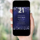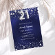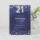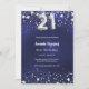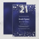 En modern, snygg och glamourös inbjudan till en 21-årsfest. En marinblå bakgrund, dekorerad med falska silverstjärnor. Den blå färgen är ojämn. Personifiera och lägg till ditt namn och festdetaljer. Nummer 21 är skrivet med en ballongstil-font.