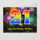 Framsidan av denna spännande, färgglada och roliga födelsedagskortdesign har en stor siffra "21" med ett regnbågsspektrum-gradering inspirerat mönster, tillsammans med meddelandet "Grattis på 21-årsdagen", och ett anpassat mottagarnamn. Framsidan har dessutom ett livfullt och färgglatt fyrverkeri-inspirerat bakgrundsmönster som spricker ut i en explosion av färg. Baksidan har ett anpassat födelsedagsmeddelande, eller kan rensas och lämnas tomt om ett meddelande ska skrivas för hand istället. Ett anpassningsbart födelsedagskort som detta kan vara ett roligt sätt att gratulera någon på deras 21-årsdag. Kort som detta kan också användas för att inbjuda gäster till en födelsedagsfest eller kalas