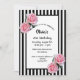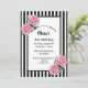 21-årsdag rosa rosor på svarta vita ränder inbjudningar