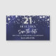 En modern och elegant Spara datum magneter för en 21-årsdag party. En marin blå bakgrund med faux silver-stjärnor. Anpassa och lägg till ett datum och namn. Den blå färg är ojämn. Texten: Spara datumet skrivs med ett stort trendig-handskript i stil.