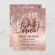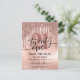 Modernt 21-årsfirande spara datum-vykort. Designen har rose gold falskt glitter & folie-bakgrund med gnistrande glitterdroppar och typsnittsmanus ''twenty one''. Anpassa med ett datum & namn.