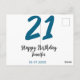 21 födelsedag fet stil blå bokstav enkel minimal vykort