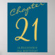 21st Birthday Party Gold Script Blue Poster