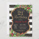 21st Födelsedaginbjudan för kvinnor. Julfödelsedagsfestinbjudan. Blom- blomma för jul. Röd och guld- glitter för svart. Svartvita randar. Tryckbara Digital. Behaga klickar "skräddarsy den" knäppas och använder vårt designverktyg för att ändra denna mall för mer ytterligare customization.