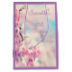 En härlig modern samtida blom- födelsedagdesign som är passande för något kvinnligt av någon ålder. Utskrivavet bedöva avbildar av nätt rosor, och vitblommar på en bedöva pastell färgad bakgrund med en älskvärd lila gränsram, med din händelse specificerar. All text är fullständigt anpassadet som möter dina krav, om du behöver någon hjälp, i att skräddarsy din produkt, behar kontaktar mig till och med mitt lager, och jag ska är jätteglad att hjälpa dig.