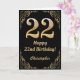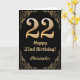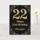 22:a födelsedag Svarta och Guld Glitter Ram Kort