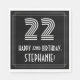 Den här upprinnande tjugonigheten inspirerade och vintage stil födelsedag med den pappra napkin-designen har en stor Art Deco stil-inspirerad nummer "22", meddelandet "LYCKLIG 22:a BIRTHDAY", ett anpassade namn och ett gräns mönster som består av linjer. Roligt, anpassade pappra blöjor av det här slaget kan användas vid en födelsedagskalender som hålls för att hedra någons tjugoandra födelsedag. [~Z0000395]