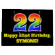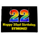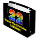 Denna pulserande och roligt födelsedag med presentsäcksdesign har ett stort nummer "22" med en regnbågsspektrumövertoning som inspirerat mönster. Det innehåller också budskapet "Lycklig 22:a födelsedag" och personlig namn. Den har också en bakgrund med svart färgad. En färglös födelsedagsäck, den här presentpåsen, kan vara ett roligt för att figurera en gåva eller present som ges för att fira någons tjugoandra födelsedag. [~Z0000521]