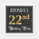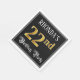 Den här pappra napkin-designen för den ornitala och opulenta födelsedagskalemetoden har en personlig namn och meddelandet "22:a Födelsedagsfesten". Den stora siffran "22:a" har faux/imitation guld-inspirerad färg mönster, och ord "Födelsedagsfest" finns i texten finare-skript-stil. Bakgrunden är färgadens svarta som standard (även om den kan anpassas). Elegant kan finare pappra blöjor som denna användas vid en födelsedagsfest som hålls för att hedra någons tjugoandra födelsedag. [~Z0000565]