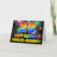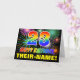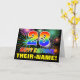 Framsidan av denna glada, roliga och färgglada födelsedagsgratulationskortdesign har en stor siffra "23" och meddelandet "HAPPY BIRTHDAY," som båda har ett färgläggningsschema inspirerat av regnbågsspektrumet, tillsammans med ett djärvt gult redigerbart mottagarnamn. Framsidan har också ett flerfärgat bakgrundsmönster inspirerat av sprängande firande fyrverkerier. Insidan har ett anpassningsbart födelsedagsgratulationsmeddelande, eller kanske kan tömmas och lämnas tomt om ett meddelande ska skrivas för hand istället. Ett glatt anpassningsbart födelsedagsgratulationskort som detta kan vara ett roligt sätt att skicka ett meddelande för att fira någon:s tjugotredje födelsedag.
